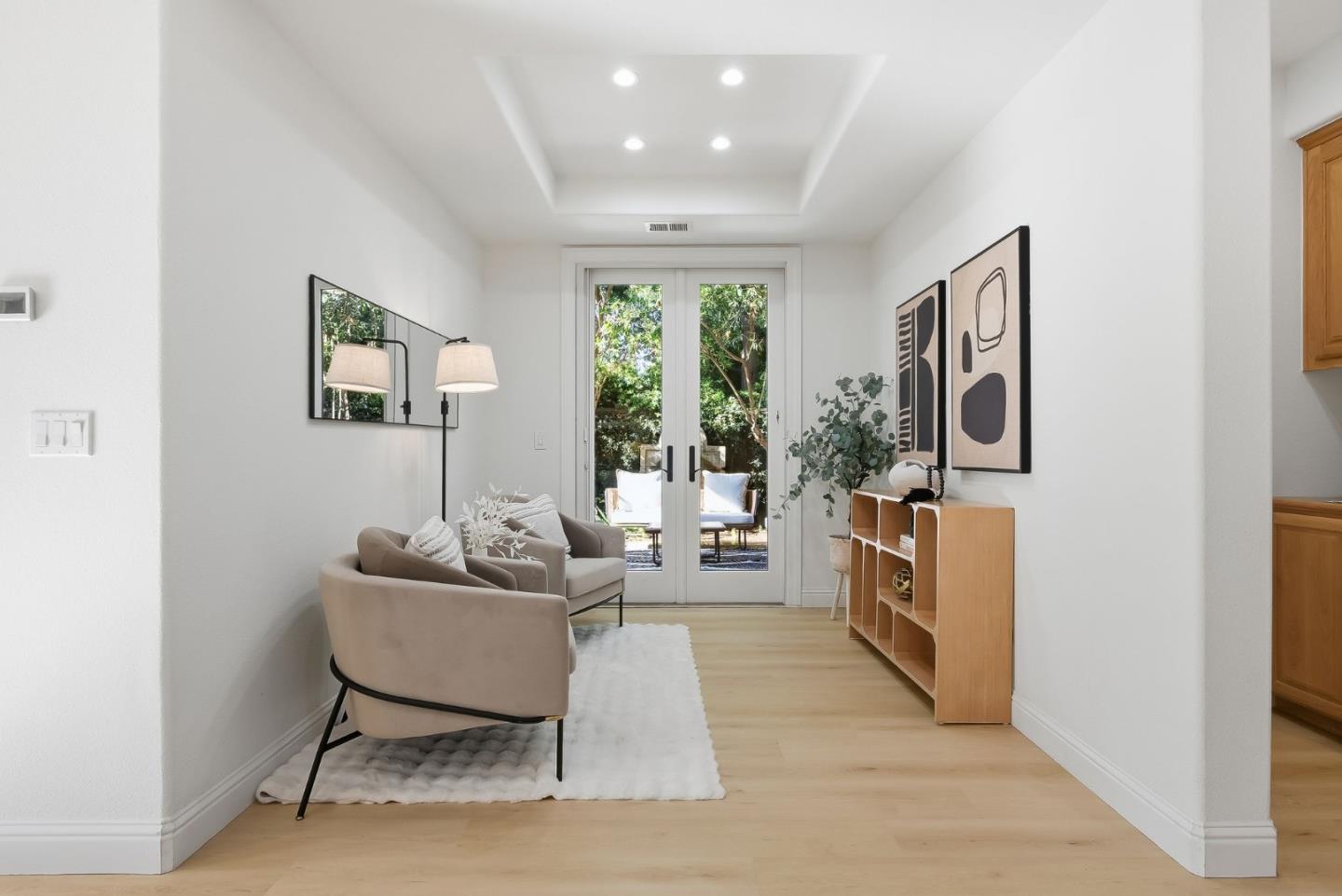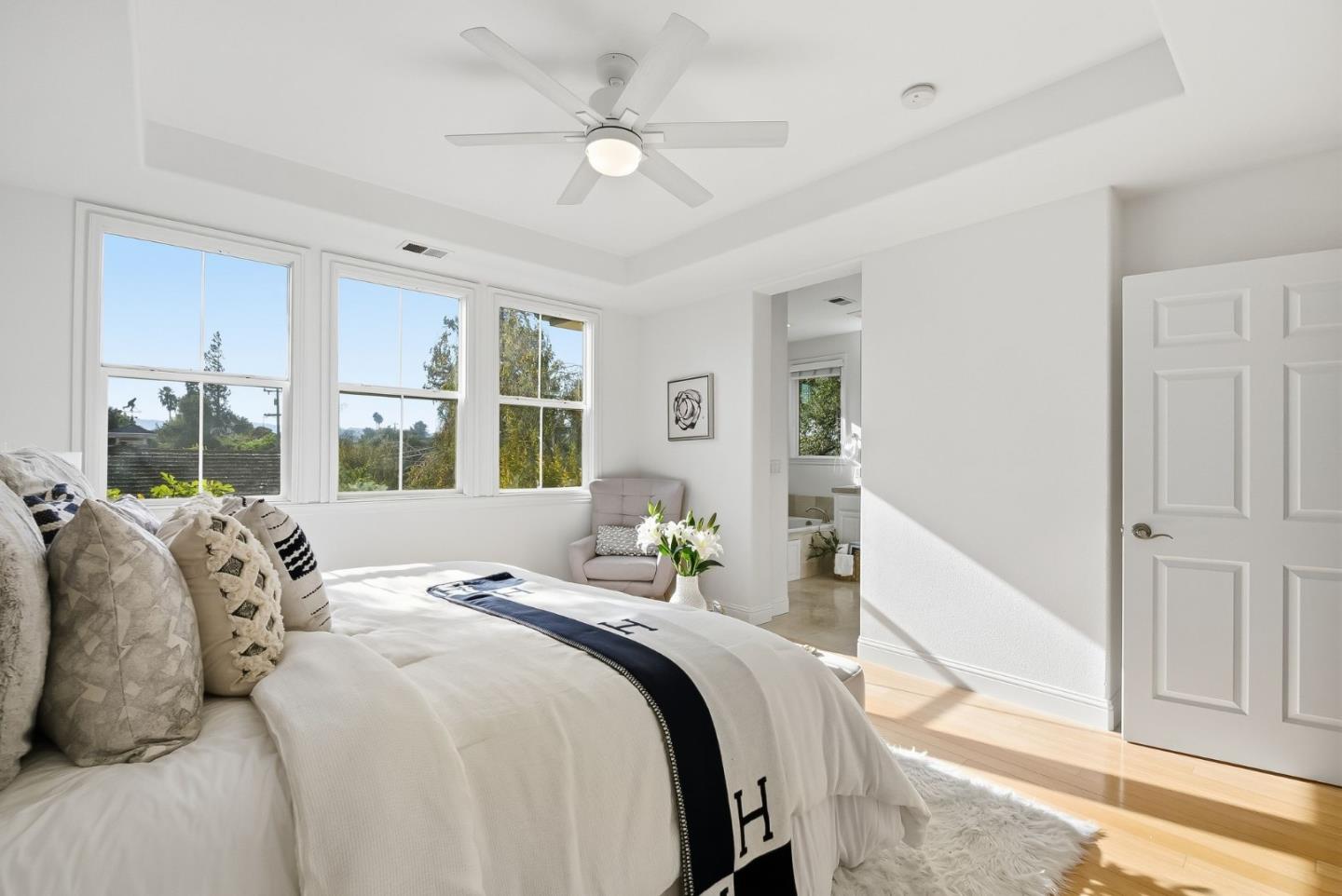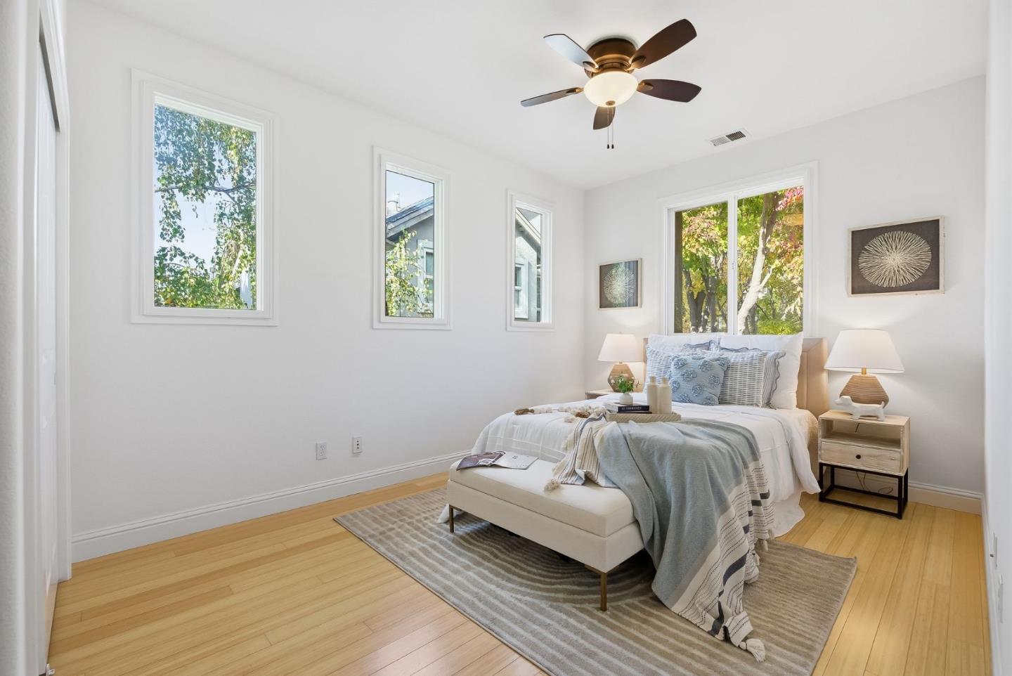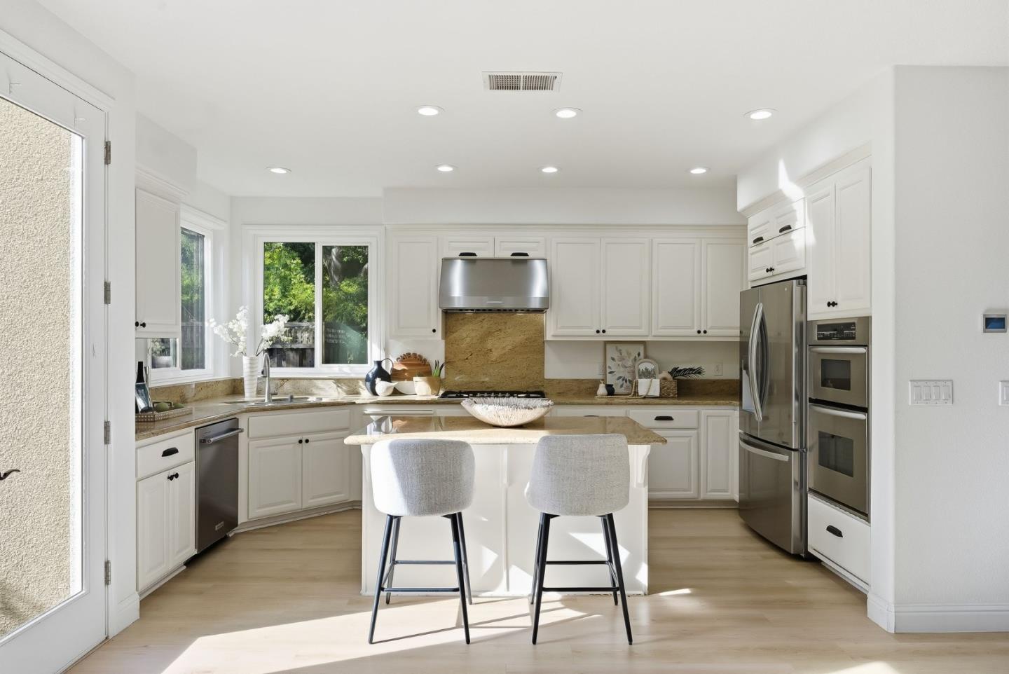 Don't miss this gorgeous Rose Garden gem! Built in 2003 with high-quality construction, modern design, and thoughtful elegance, this home offers a rare blend of style, comfort, and convenience. Privately tucked back on one of the largest lots in the community (approx. 5,462 SqFt), this spacious 2,056 SqFt +/- home features 4 bedrooms and 2.5 bathrooms. The bright, open floor plan showcases high ceilings, abundant natural light, and seamless indoor-outdoor living. The gourmet kitchen includes a central island, granite countertops, and stainless steel appliances, including a 1-year-new Bosch gas cooktop and Zephyr range hood. The primary suite offers a walk-in closet and a luxurious bath with double vanity, stall shower, and Jacuzzi tub. Step outside to the serene backyard, where a beautiful fountain creates a tranquil ambiance and enhances the homes connection between indoor comfort and outdoor enjoyment. Additional features include central heating and air conditioning, double-pane windows, and ample storage throughout. Enjoy an exceptionally convenient locationjust a short walk to the Rose Garden, local shops and restaurants, with easy access to Hwy 880, Valley Fair Mall/Santana Row, The Alameda, and Downtown San Jose.
