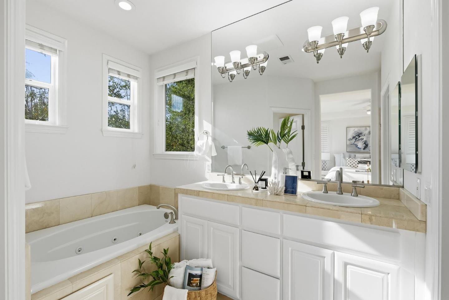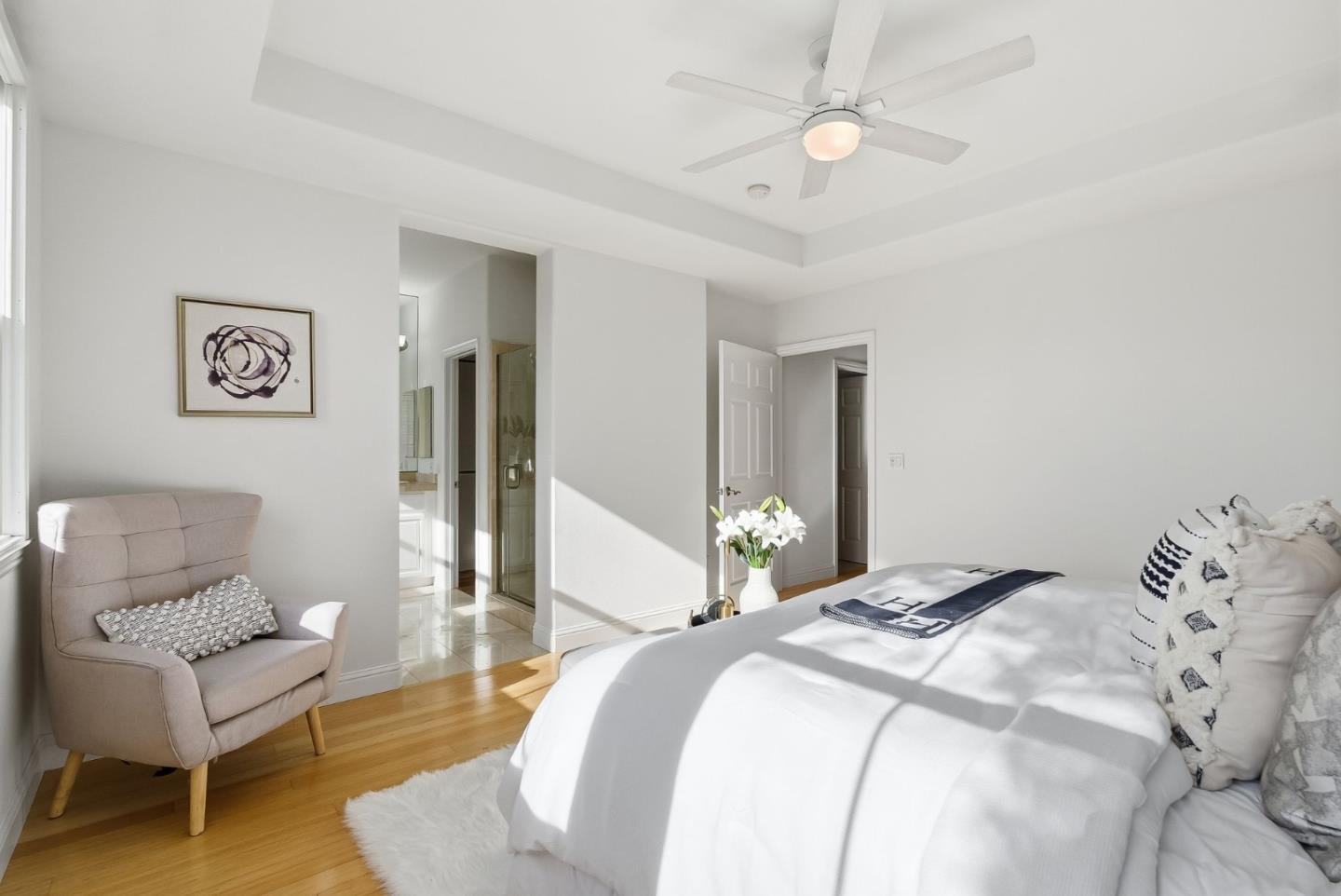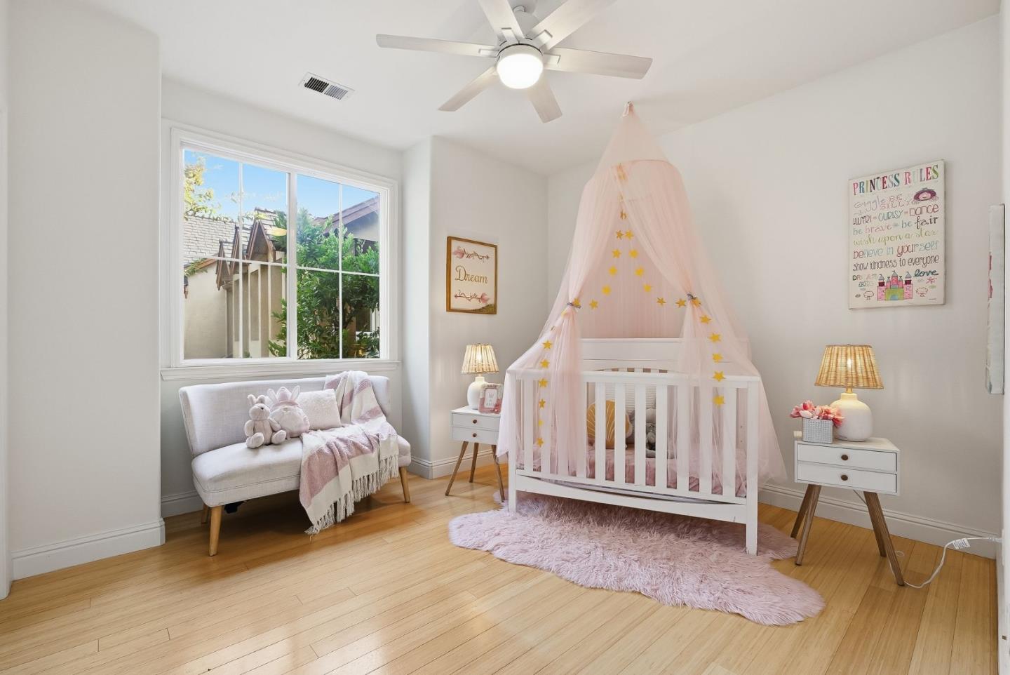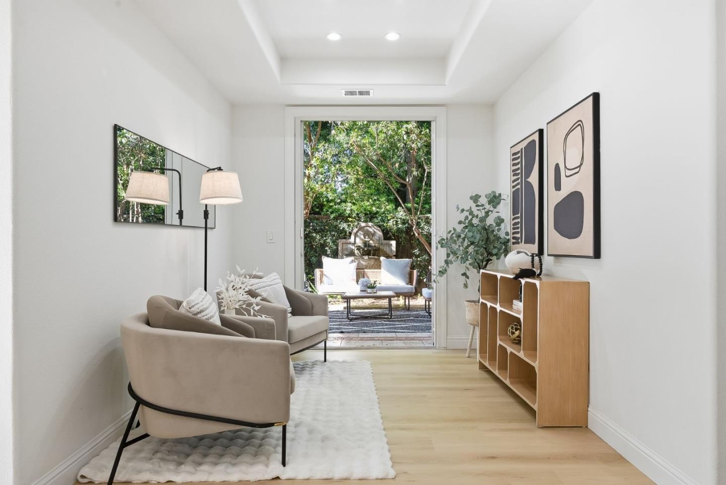 Don't miss this gorgeous Rose Garden gem! Built in 2003 with high-quality construction, modern design, and thoughtful elegance, this home offers a rare blend of style, comfort, and convenience. Privately tucked back on one of the largest lots in the community (approx. 5,462 SqFt), this spacious 2,056 SqFt +/- home features 4 bedrooms and 2.5 bathrooms. The bright, open floor plan showcases high ceilings, abundant natural light, and seamless indoor-outdoor living. The gourmet kitchen includes a central island, granite countertops, and stainless steel appliances, including a 1-year-new Bosch gas cooktop and Zephyr range hood. The primary suite offers a walk-in closet and a luxurious bath with double vanity, stall shower, and Jacuzzi tub. Step outside to the serene backyard, where a beautiful fountain creates a tranquil ambiance and enhances the homes connection between indoor comfort and outdoor enjoyment. Additional features include central heating and air conditioning, double-pane windows, and ample storage throughout. Enjoy an exceptionally convenient locationjust a short walk to the Rose Garden, local shops and restaurants, with easy access to Hwy 880, Valley Fair Mall/Santana Row, The Alameda, and Downtown San Jose.