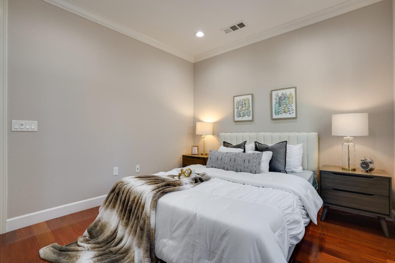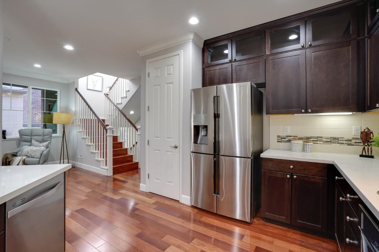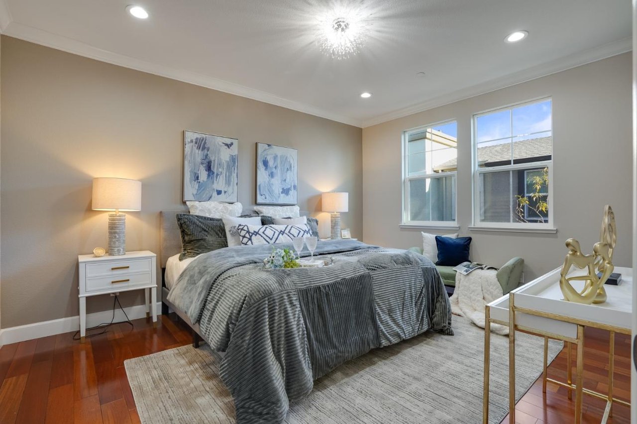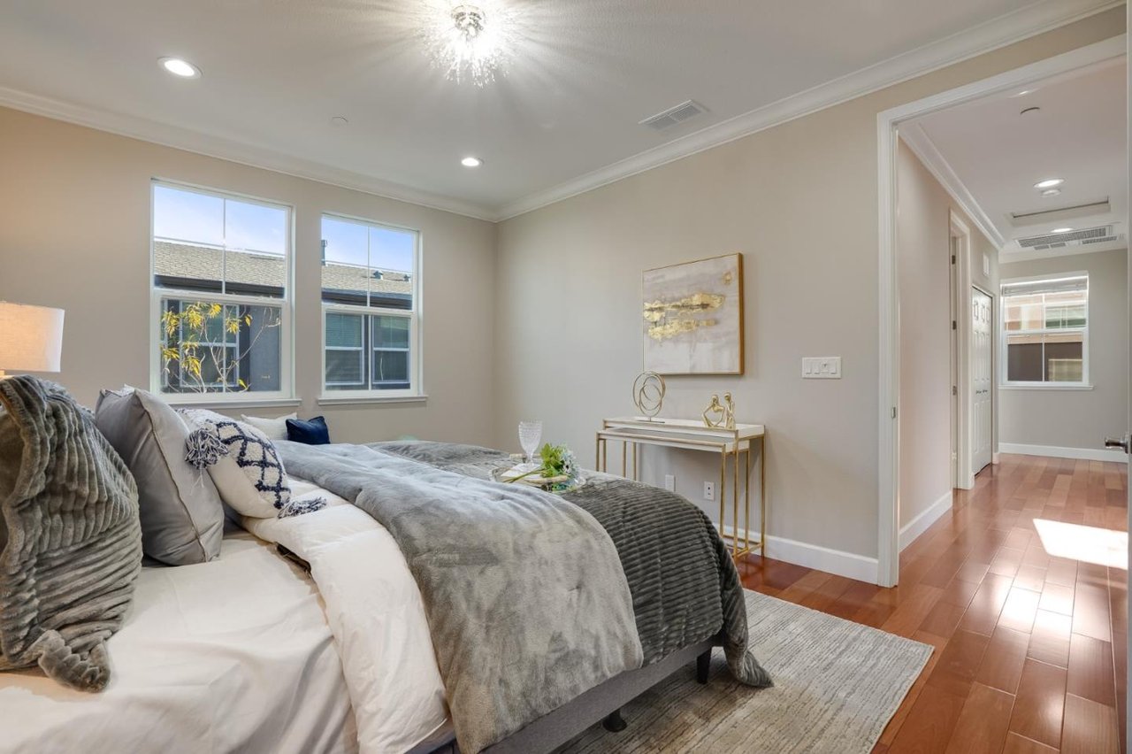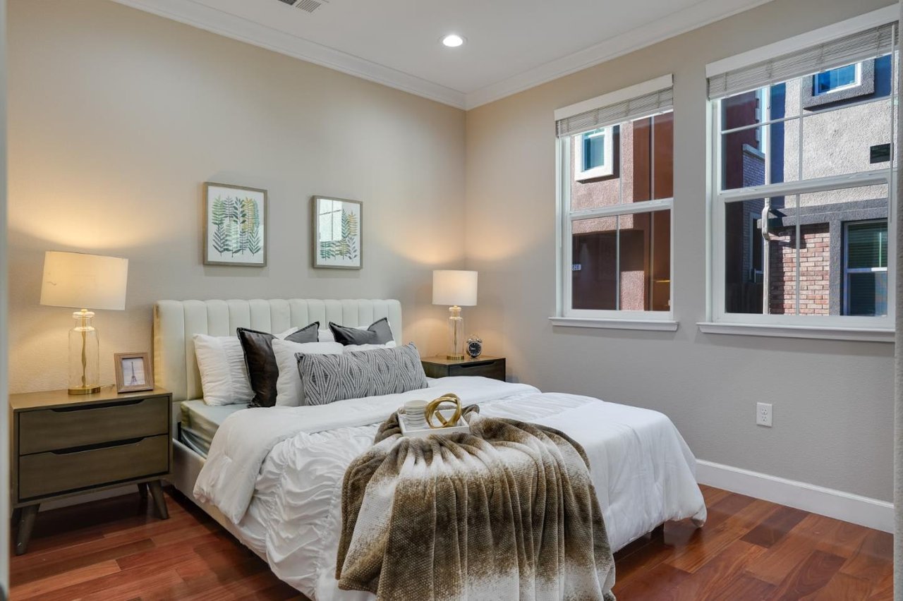 Dont miss this gorgeous End Unit Townhouse w/ single family ownership in the highly desirable Berryessa crossing neighborhood. Built in 2014, open concept floor plan with many windows bringing in tons of natural light. Gourmet kitchen has quartz countertop, breakfast bar, walk-in pantry and stainless steel appliances. Hardwood floor on all 3 levels. Spacious primary suite features double sink vanity and large walk-in closet. One bedroom with full bathroom on the ground floor, perfect for rent income or guests. Freshly painted with designer picked color, two zone central heating & AC, double pane windows, attached two car garage and much more. Walking distance to Safeway, CVS etc. in Market Park plaza, and close to BART station, golf course, Townsend park. Easy access to highway 101, 880 & 680 and short commute to Google, Amazon, Apple campus etc. Low HOA of only $195/month!