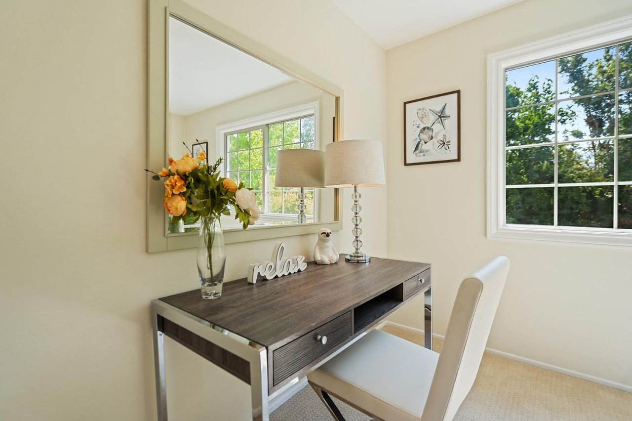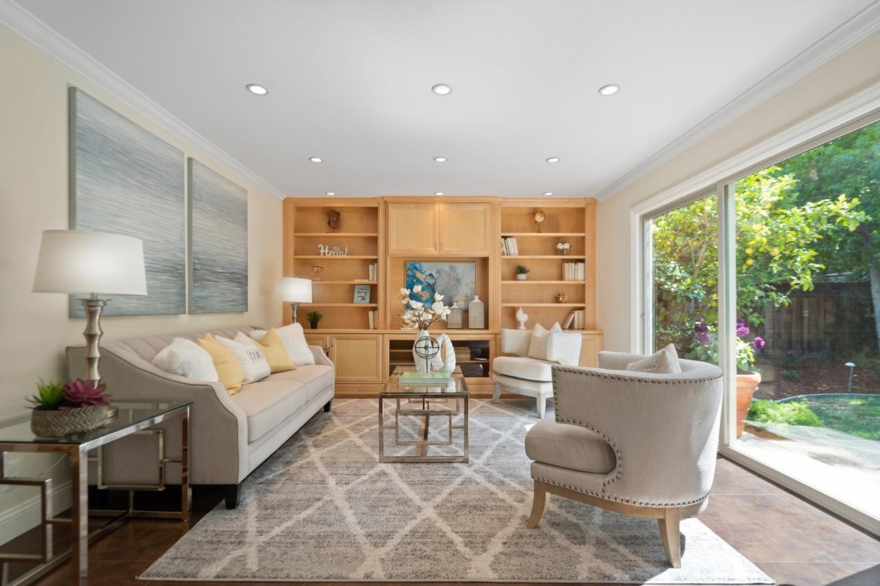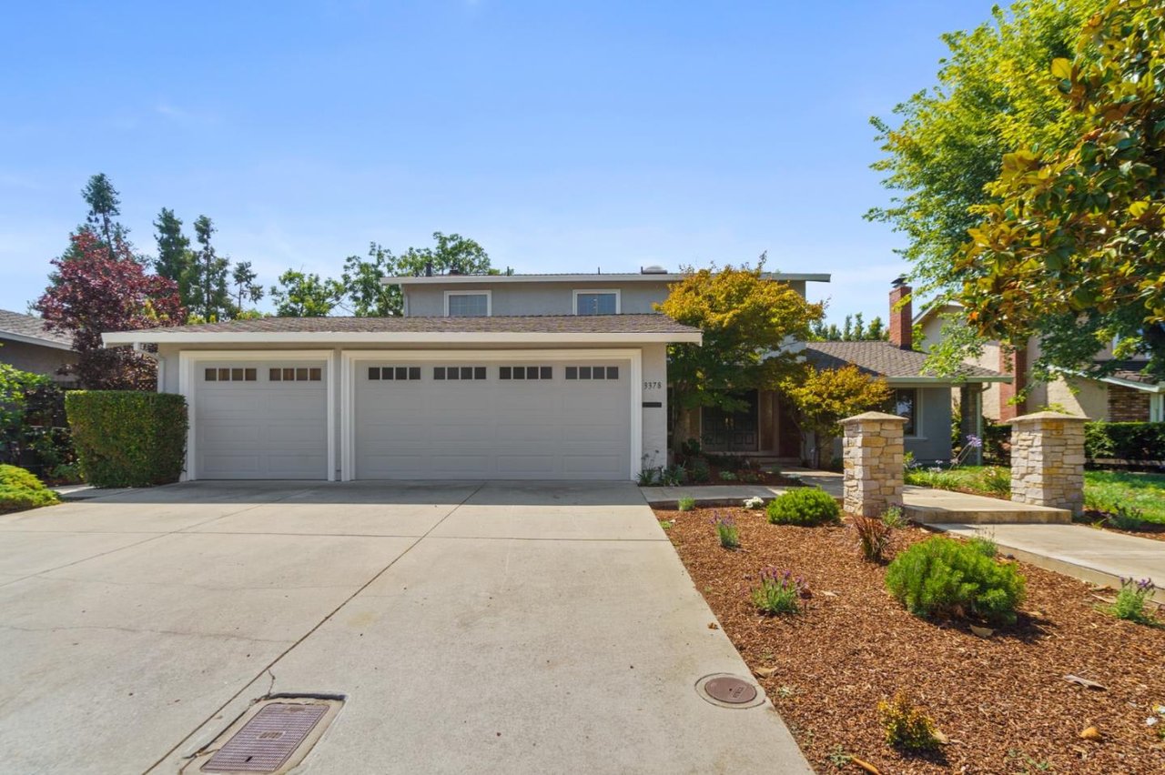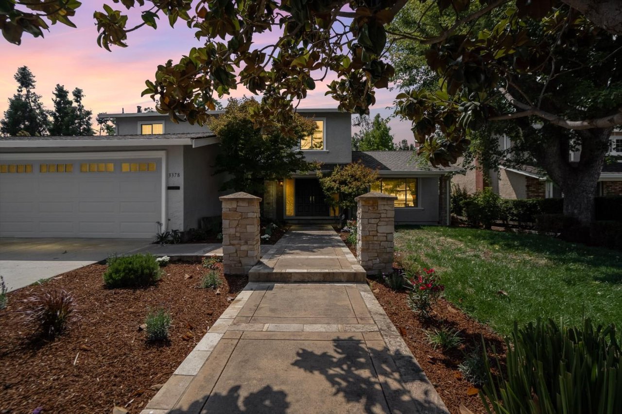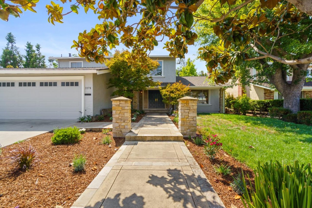 Minutes from parks, shops, dining and recreation, this 5-bed, 3-bath home is filled with upscale delights in family-friendly Waverly Park. Freshly updated with new paint, carpet, luxury vinyl flooring and light fixtures, this 2-story home opens to a large family room and modern kitchen overlooking a well-landscaped yard with lemon, apple, plum and avocado trees. The spacious home adds in a formal dining and living room with a fireplace, an office, a bedroom and a light-filled sunroom downstairs. The upstairs includes the master suite with a walk-in closet, two bedrooms, hallway bathroom and a built in library. Storage is no problem with plenty of built-ins, a 3-car garage, a large driveway and a laundry room with a washer/dryer. This tight-knit Mountain View neighborhood sits between Hwy 85 and Grant Road, close to schools, groceries, and an easy commute to Google, Apple, Silicon Valley and San Jose International Airport.