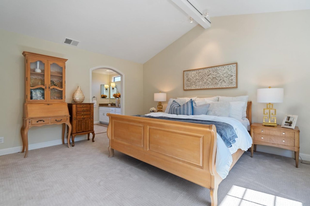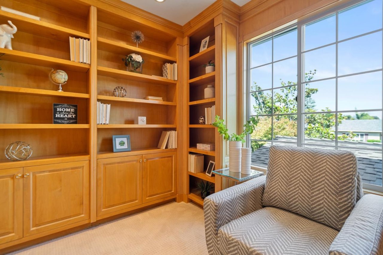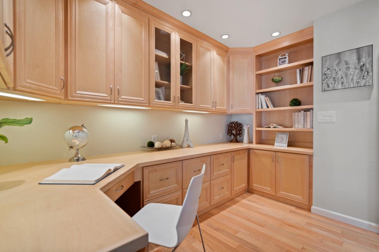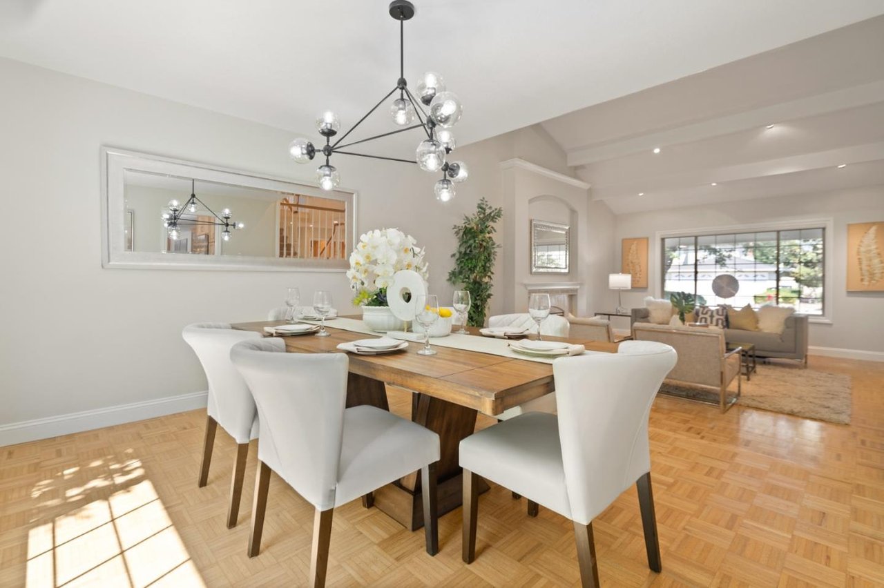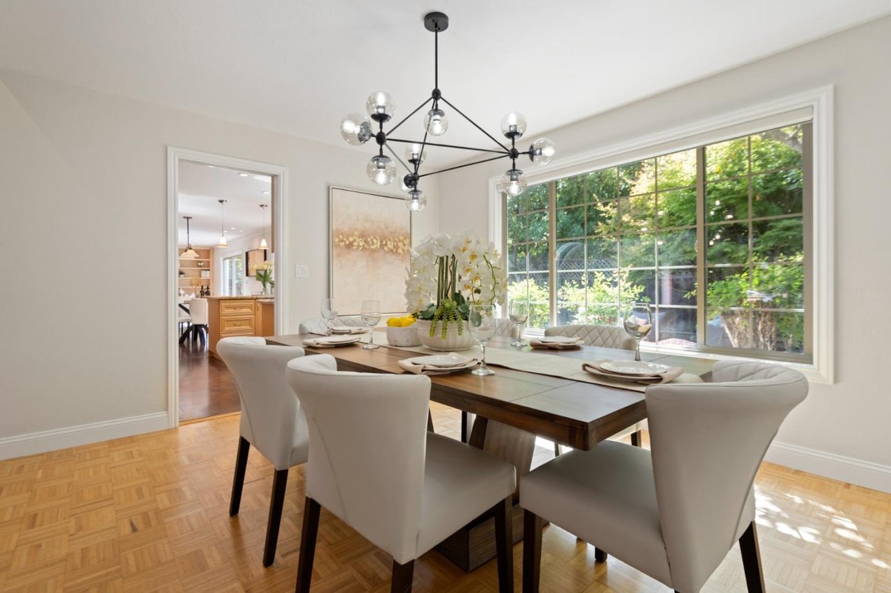 Minutes from parks, shops, dining and recreation, this 5-bed, 3-bath home is filled with upscale delights in family-friendly Waverly Park. Freshly updated with new paint, carpet, luxury vinyl flooring and light fixtures, this 2-story home opens to a large family room and modern kitchen overlooking a well-landscaped yard with lemon, apple, plum and avocado trees. The spacious home adds in a formal dining and living room with a fireplace, an office, a bedroom and a light-filled sunroom downstairs. The upstairs includes the master suite with a walk-in closet, two bedrooms, hallway bathroom and a built in library. Storage is no problem with plenty of built-ins, a 3-car garage, a large driveway and a laundry room with a washer/dryer. This tight-knit Mountain View neighborhood sits between Hwy 85 and Grant Road, close to schools, groceries, and an easy commute to Google, Apple, Silicon Valley and San Jose International Airport.