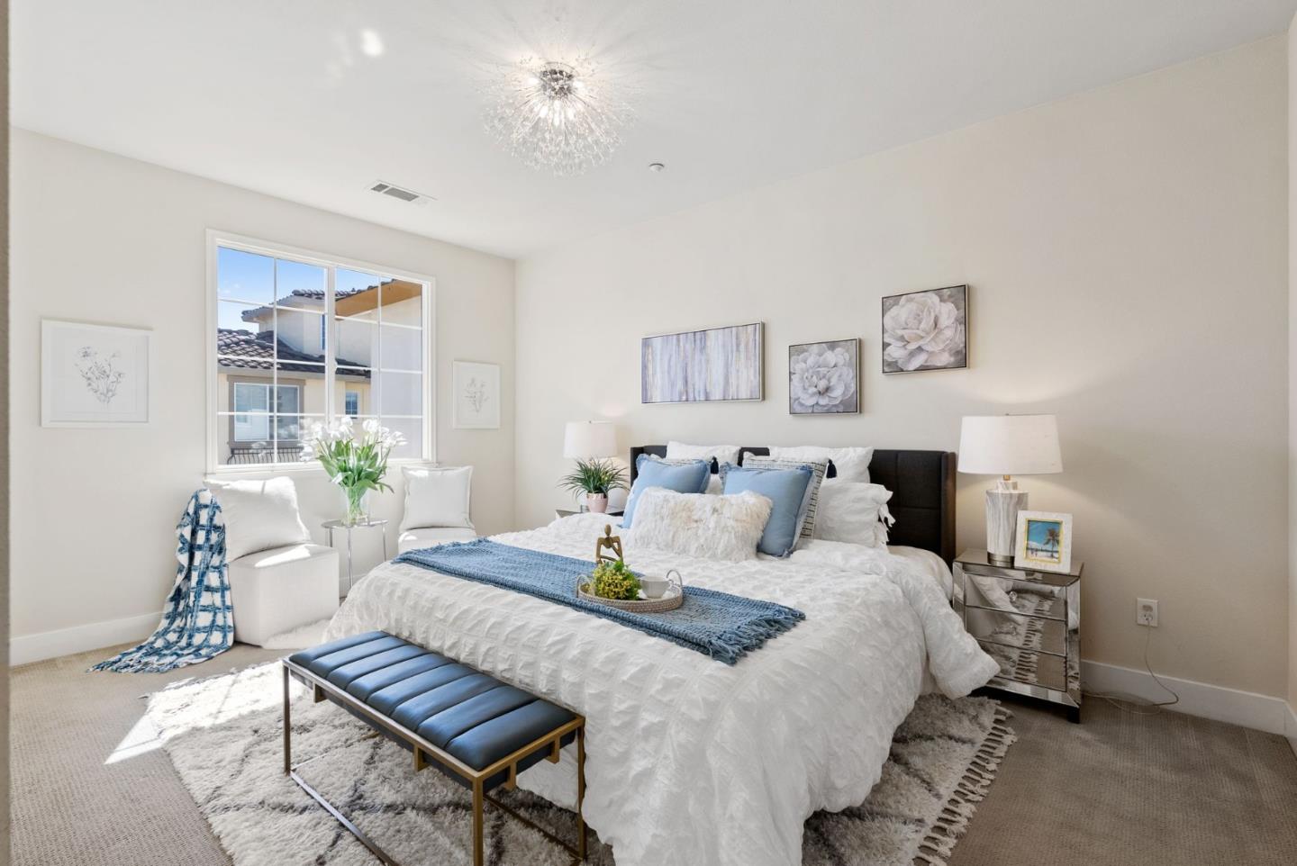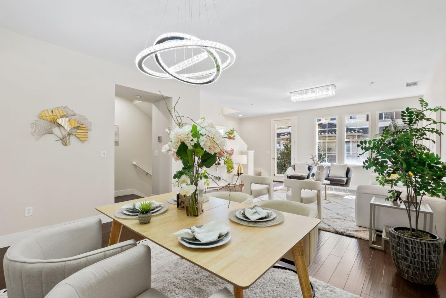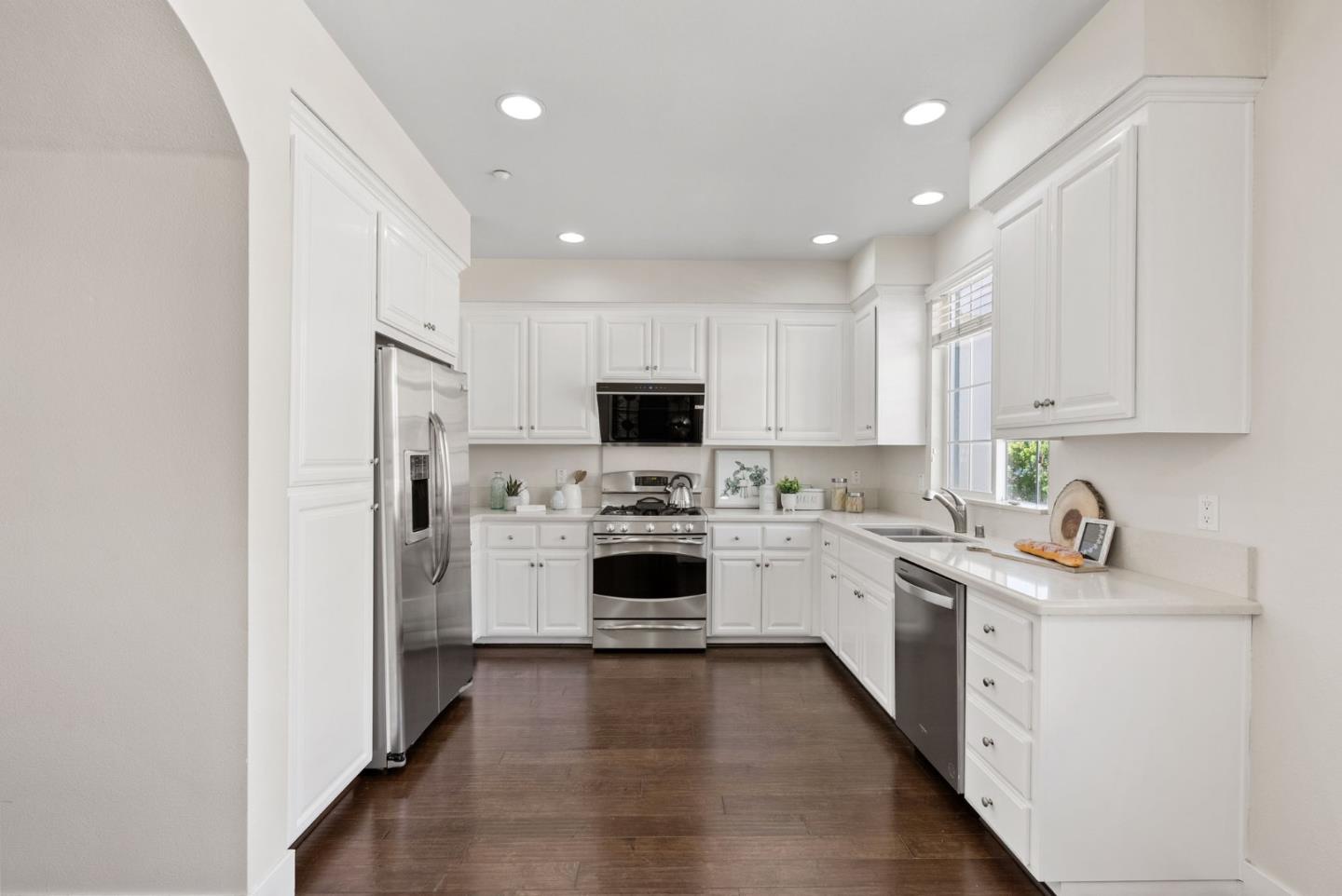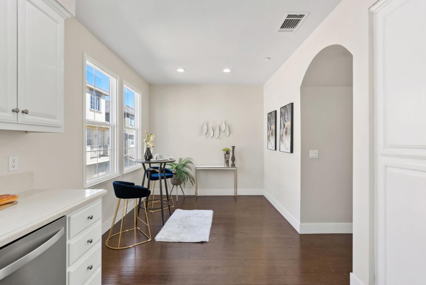 Don't miss this gorgeous move-in-ready Townhouse in the highly desirable Tasman Crossing neighborhood. Built in 2011, this beautiful home has 3 bedrooms/3.5bathrooms. Open concept floor plan with many big windows bringing in tons of natural light. Gourmet kitchen has breakfast nook, Caesarstone countertop, powerful range hood and stainless steel appliances. Spacious primary suite features double sink vanity and large walk-in closet. One bedroom with full bathroom on the ground floor, perfect for rent income or guests. Other amenities include a private balcony, multi-zone central heating & AC, dual pane windows, attached two car garage and so much more. Extremely convenient location, walking distance to 7 Seas park, stores and Google/Meta shuttle stops. Only minutes driving to major IT employers such as Google, Amazon, Linkedin, etc. Easy access to Hwy 101, 237 and Central Express. Well maintained HOA with low HOA fee of $458 and it covers water and garbage!