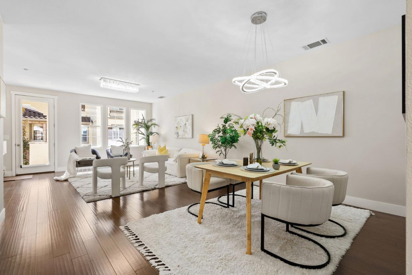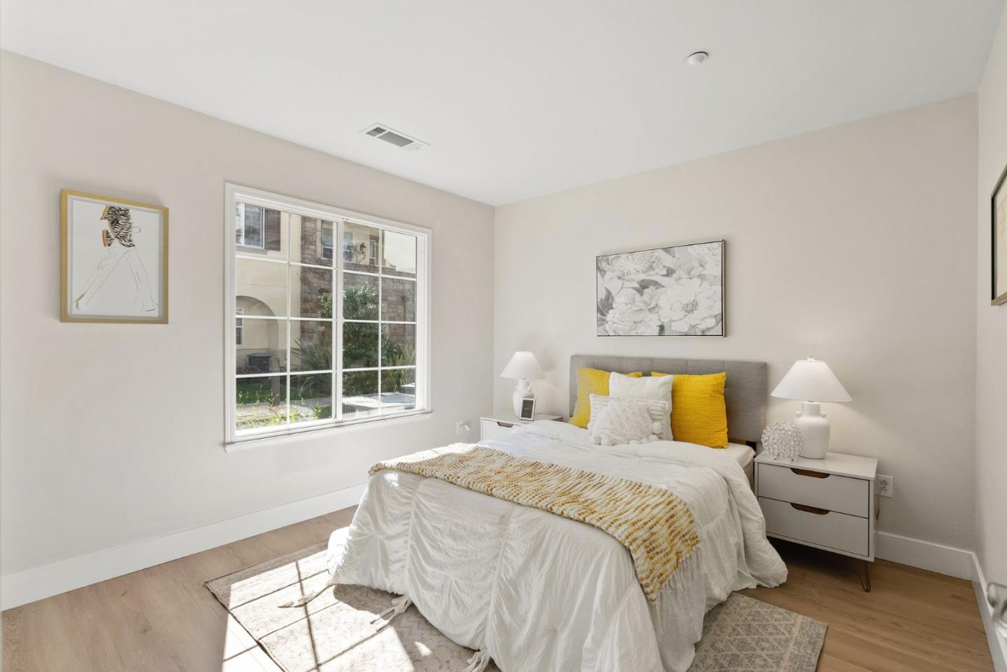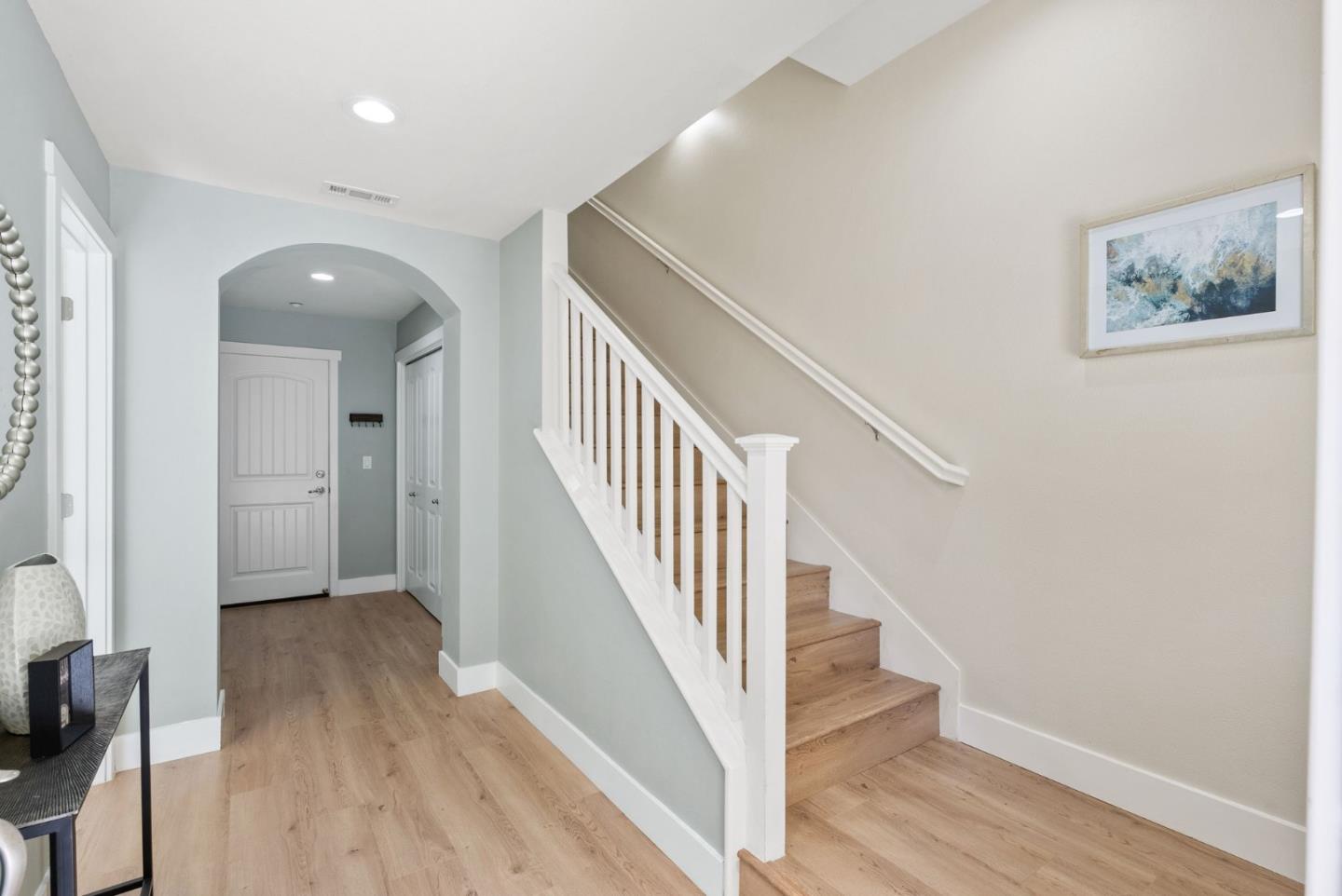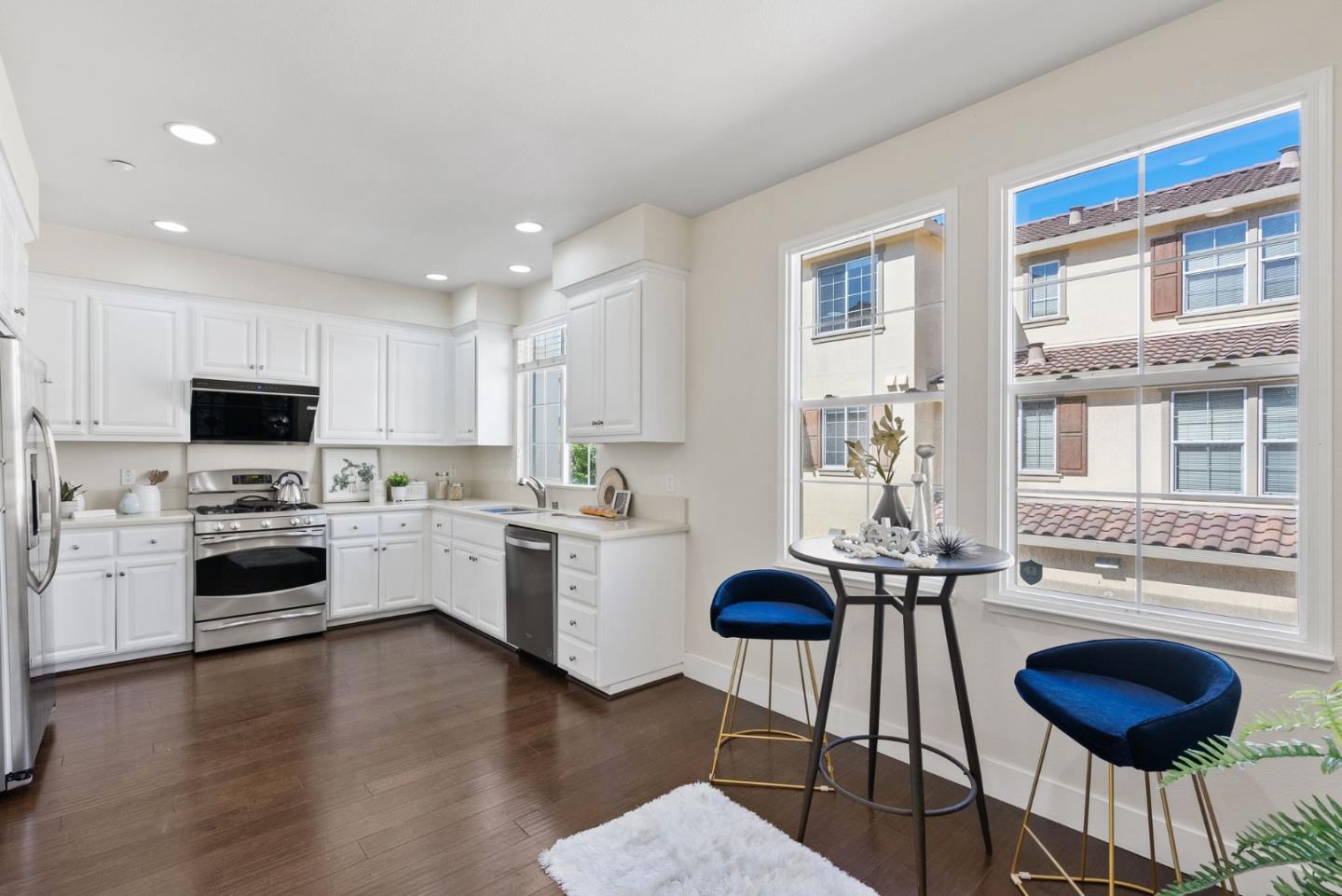 Don't miss this gorgeous move-in-ready Townhouse in the highly desirable Tasman Crossing neighborhood. Built in 2011, this beautiful home has 3 bedrooms/3.5bathrooms. Open concept floor plan with many big windows bringing in tons of natural light. Gourmet kitchen has breakfast nook, Caesarstone countertop, powerful range hood and stainless steel appliances. Spacious primary suite features double sink vanity and large walk-in closet. One bedroom with full bathroom on the ground floor, perfect for rent income or guests. Other amenities include a private balcony, multi-zone central heating & AC, dual pane windows, attached two car garage and so much more. Extremely convenient location, walking distance to 7 Seas park, stores and Google/Meta shuttle stops. Only minutes driving to major IT employers such as Google, Amazon, Linkedin, etc. Easy access to Hwy 101, 237 and Central Express. Well maintained HOA with low HOA fee of $458 and it covers water and garbage!
