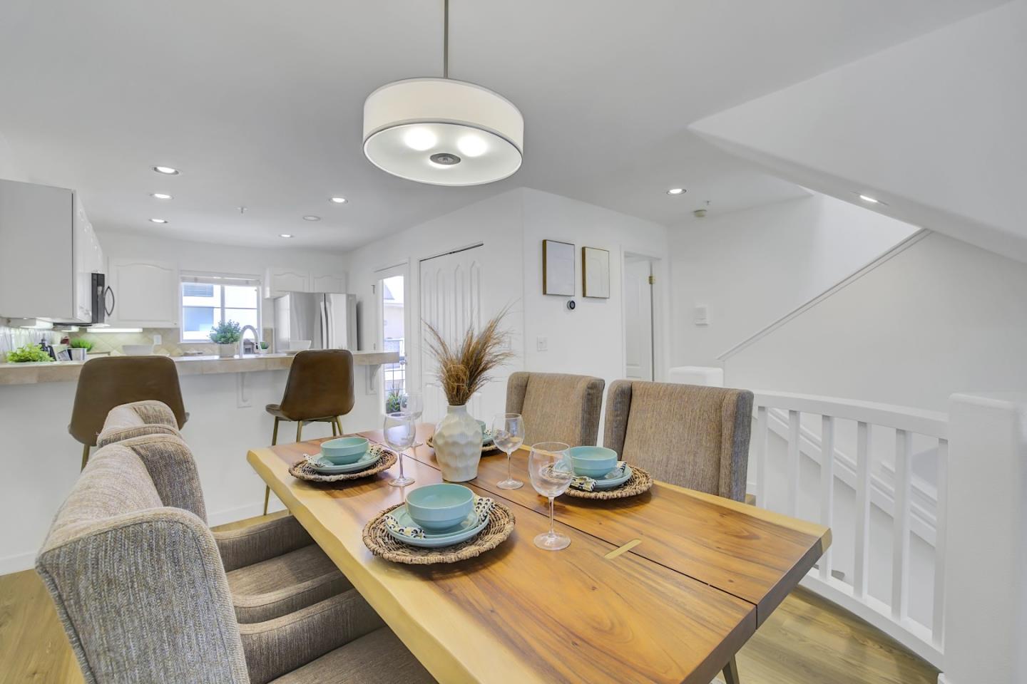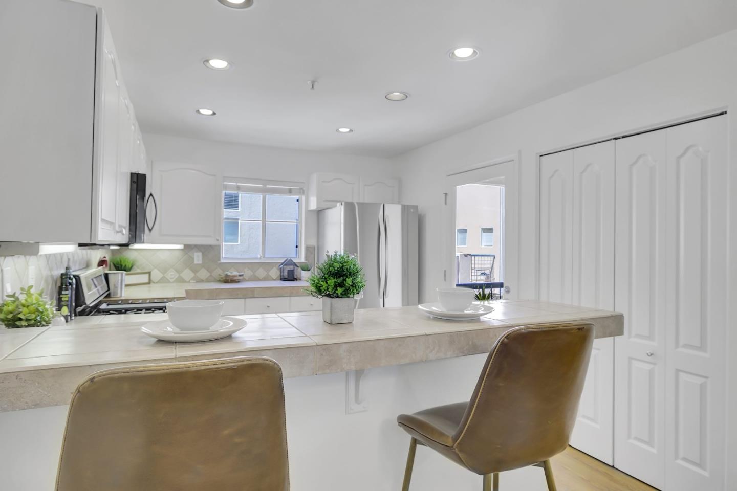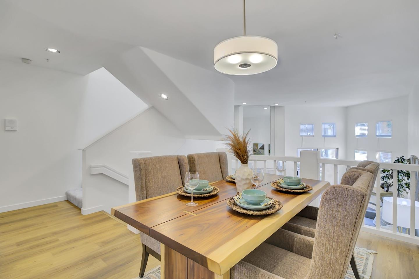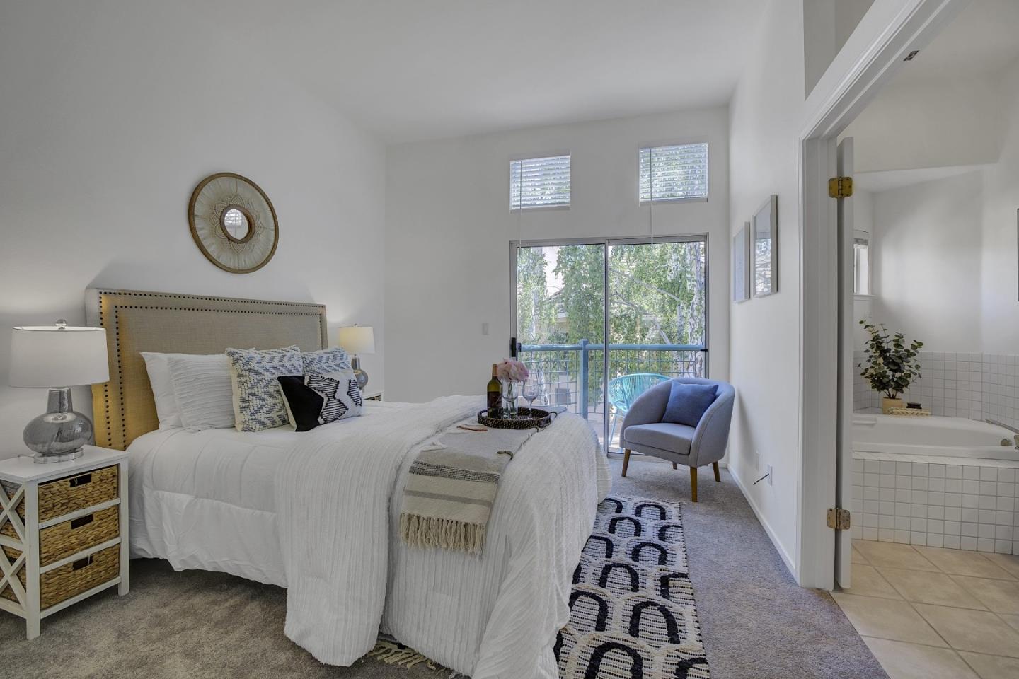 Elegant tri-level townhome with modern appeal. Prime central location inside the community. Featuring two bedroom suites on the upper level, high ceilings in main living area and primary suite, main level patio along with two additional balconies. This home offers ample private outdoor space. Sunnyvale's meticulously maintained Expressions community features amenities like swimming pool, spa, walking paths and benches, park-like greenery with mature redwood trees, and a play area. Immerse yourself in our extensive photo gallery, with 3D walk-through, and 360-degree exterior panoramas for an intimate virtual visit. With an ATTACHED one-car garage plus an additional storage room behind the garage, and a 2nd DETACHED private garage located in a row of garages, this home offers both convenience and practicality. Situated adjacent to Cannery Park and within a short distance from major commute routes such as 237, 101, 85, Central Expressway, CalTrain, and VTA routes, this location perfectly blends urban convenience with suburban tranquility. Find us easily: From the gate, building 978 Unit #4 is to the right of the pool area. No sign on Pajaro Ave.