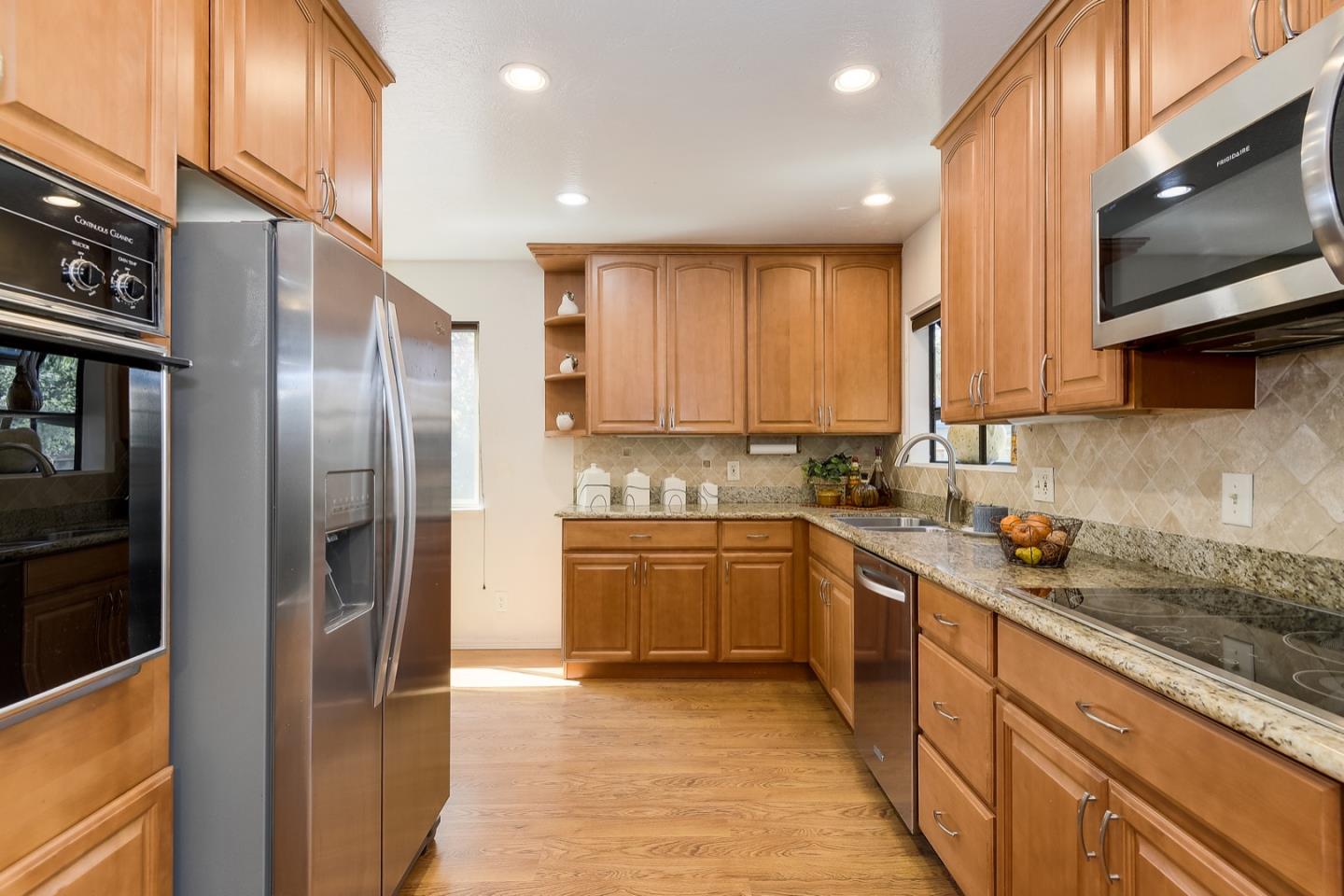 Welcome to 995 Tulip Ct! Lovely Ponderosa Park home located on a quiet cul-de-sac and situated on an expansive 8,158 Sq Ft pie shaped lot! Park-like backyard boasts a sparkling in-ground & heated pool, large patio for outdoor entertaining, mature plants & trees, raised vegetable beds, storage sheds, & automatic irrigation! Excellent floor plan featuring a separate living room, family room, & dining area, full bath on ground level, as well as a spacious primary suite! Lovely kitchen boasts stained cabinets, granite countertops, SS appliances, recessed lights, & a large walk-in pantry! Other features include double pane windows, copper plumbing, central forced heat, and a gas fireplace! Prime Sunnyvale location within walking distance to Ponderosa Park, Starbucks, as well as close proximity to Apple Park, shopping, restaurants, & many high-tech companies!